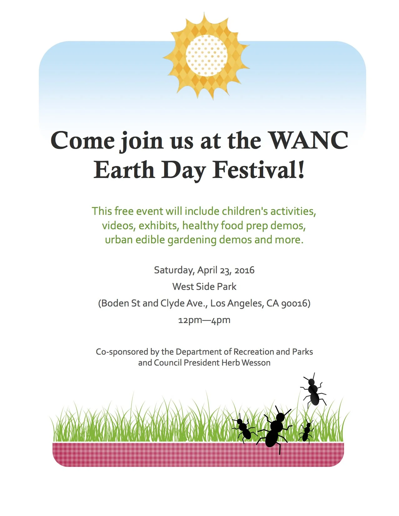 One of our neighboring Neighborhood Councils has invited everyone to celebrate Earth Day with them: