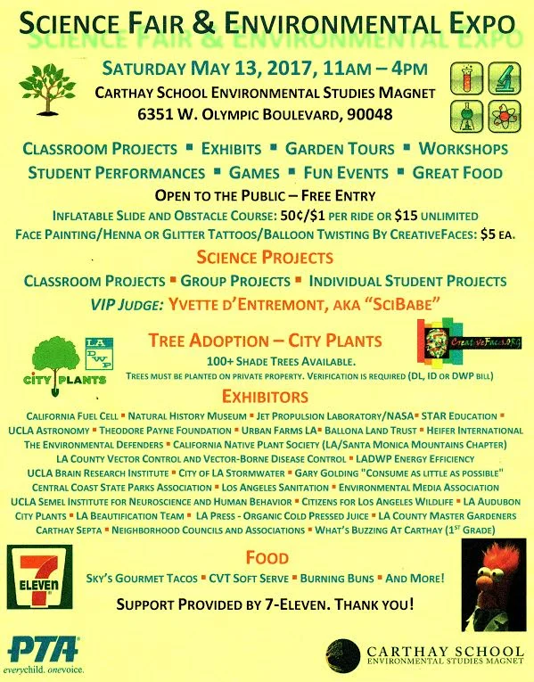 Celebrate the sciences and our environment with local community members on May 13, 2017 at the Carthay School of Environmental Studies. Students will display classroom projects and exhibits, while guests are invited to join in games, workshops and garden tours. Come and enjoy the food and entertainment, and adopt a tree to add some shade to your lawn!