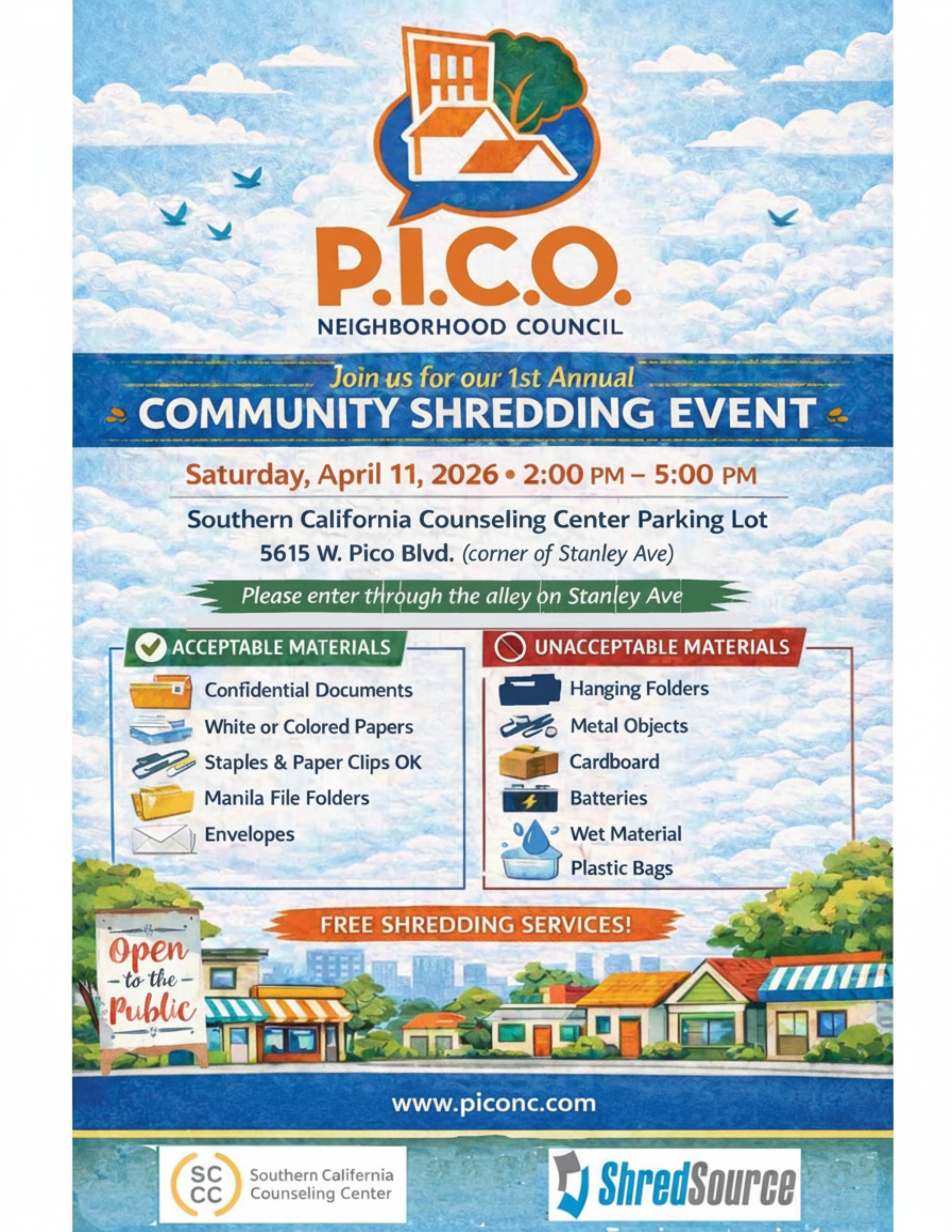 Agendas for all P.I.C.O Neighborhood Council meetings are posted in our public For the Record folder. You can access current agendas by clicking on the name of the meeting below. All agendas are dated. Agendas will be posted 72 hours prior to all regularly scheduled meetings.