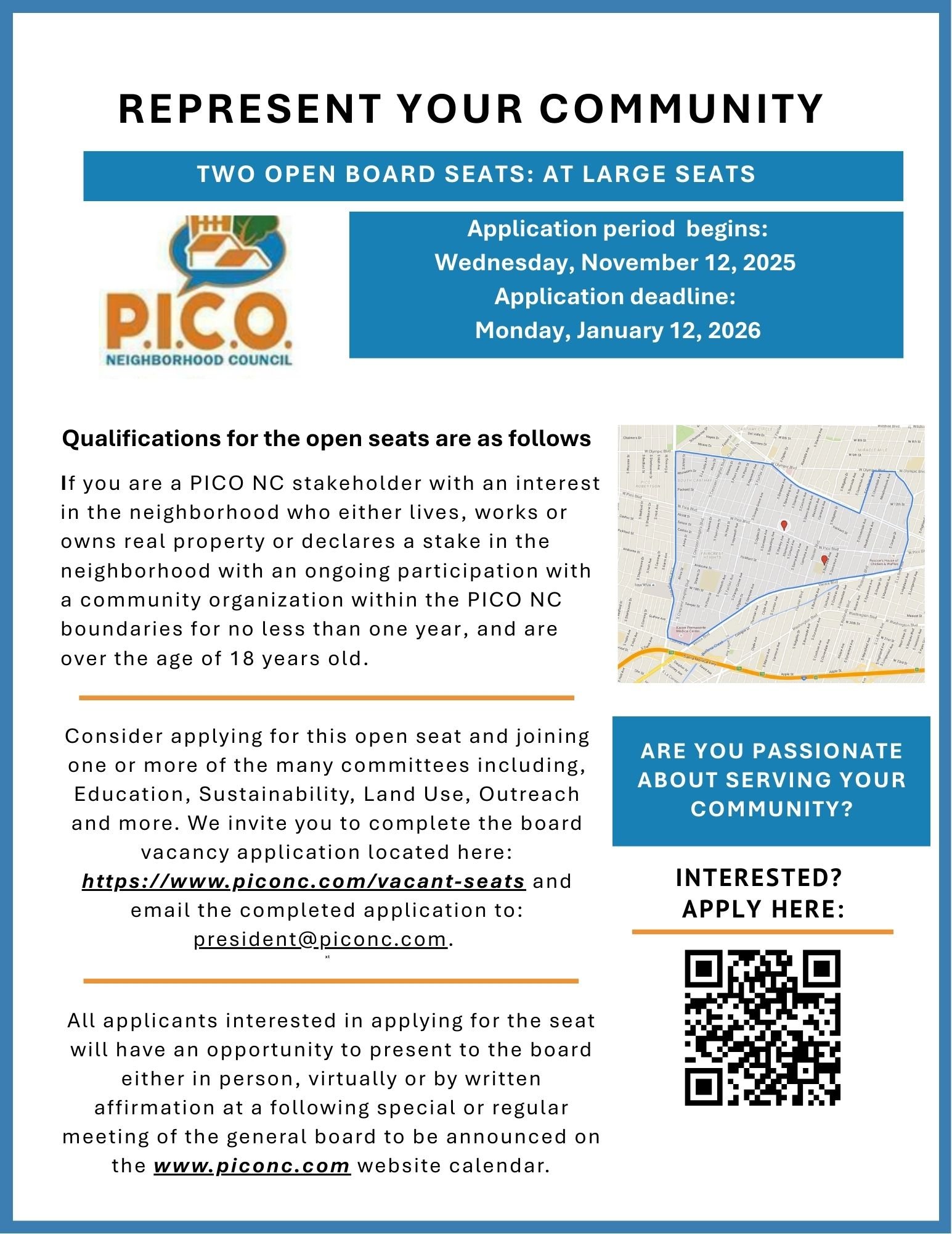 You can subscribe to the City’s Early Notification system and receive the PICO NC’s Agendas or ANY NC Agendas here.